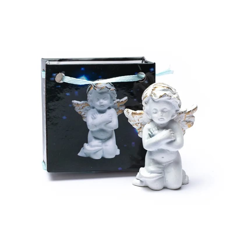 Leuk wit met goud bewerkt Engeltje, in een geschenktasje.