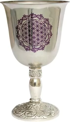 Mooie grote Kelk met gedecoreerde paarse Flower of Life. Voor gebruik op het altaar en bij rituelen.